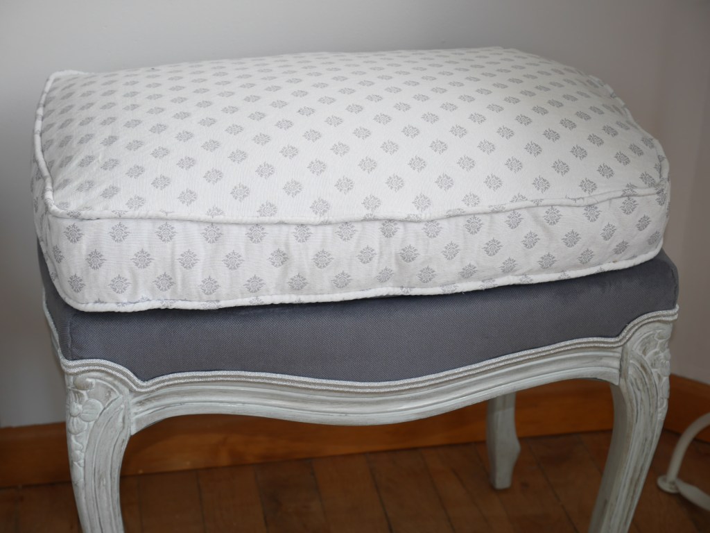 Réalisation d’une housse de coussin avec passepoil pour un rectangle de mousse sur un banc coffre.Cabriolet Louis XV.Chauffeuse vintage.Cabriolet Louis VXI.Pouf rond style Louis XV.Cabriolet Louis XV.Voltaire taille enfant réalisé à partir d’une carcasse neuve.Pouf régence réalisé à partir d’une carcasse neuve.Pouf style Louis XV.