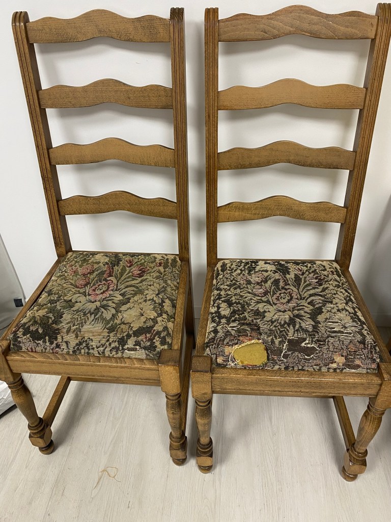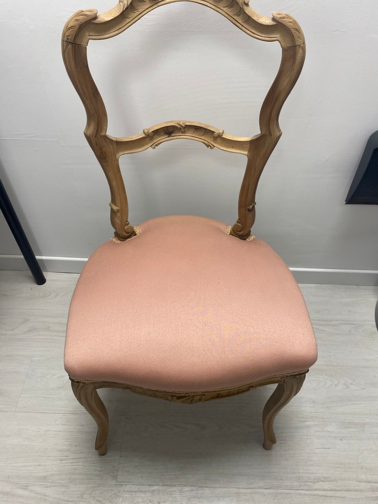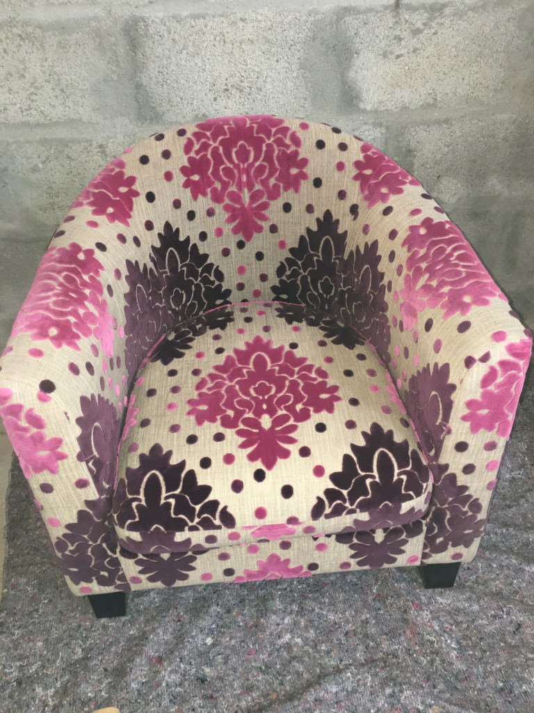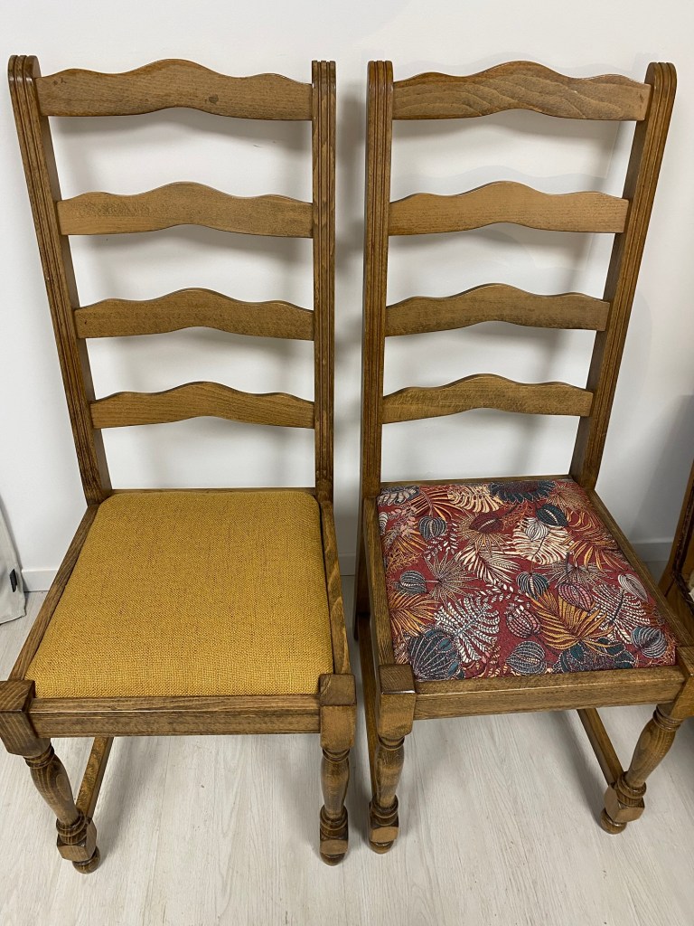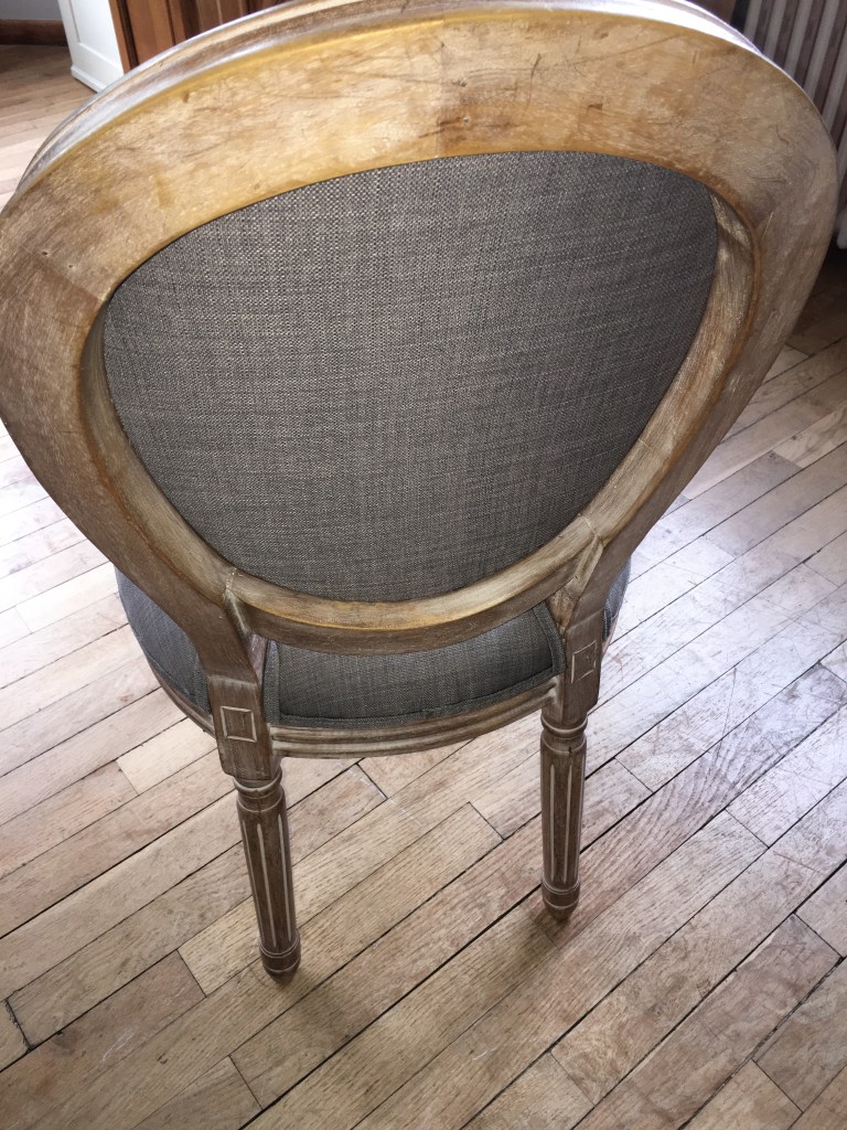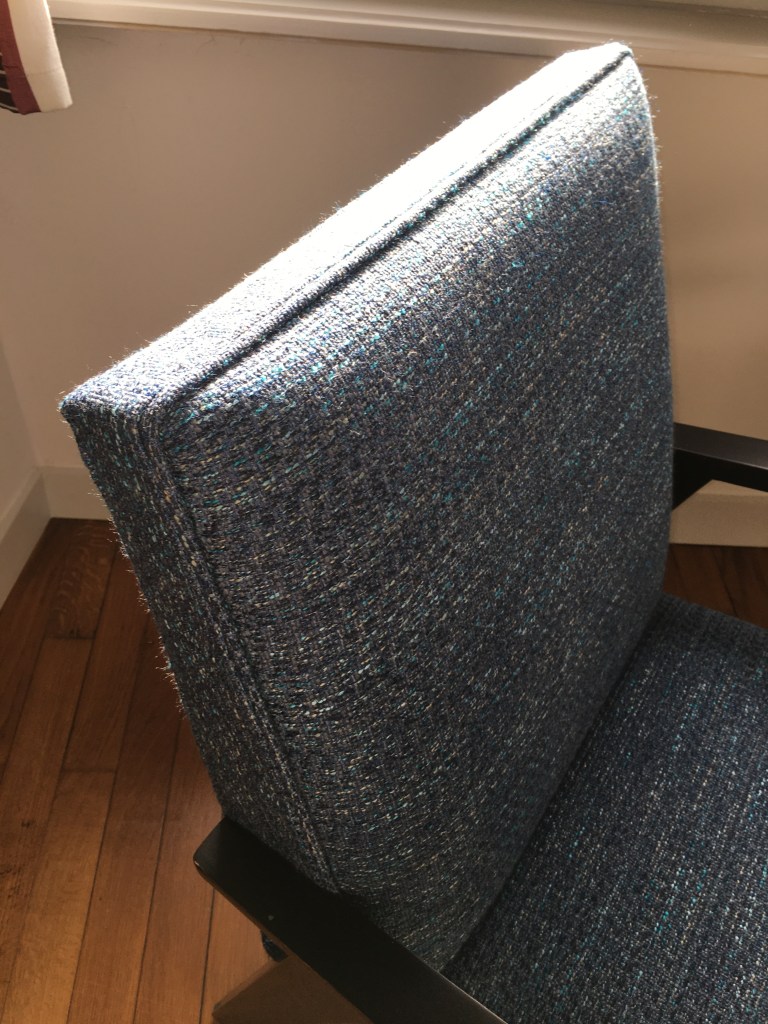 Nouveau simili cuir pour ces 4 assises de chaises de bar.Changement de tissu et réfection d’assise pour ces 2 fauteuils de style Voltaire. Finition et tissu ton sur ton.Changement de tissu (fourni par les clients) pour ces deux fauteuils.Changement de tissu et garnissage partiel pour ce fauteuil inclinable.Nouveau tissu et réfection du dossier pour ce fauteuil.Réfection complète semi-traditionnelle pour cette chaise.Recouvrage pour ce fauteuil, finition confectionnée dans le tissu au dos.Restauration complète fauteuil de style.