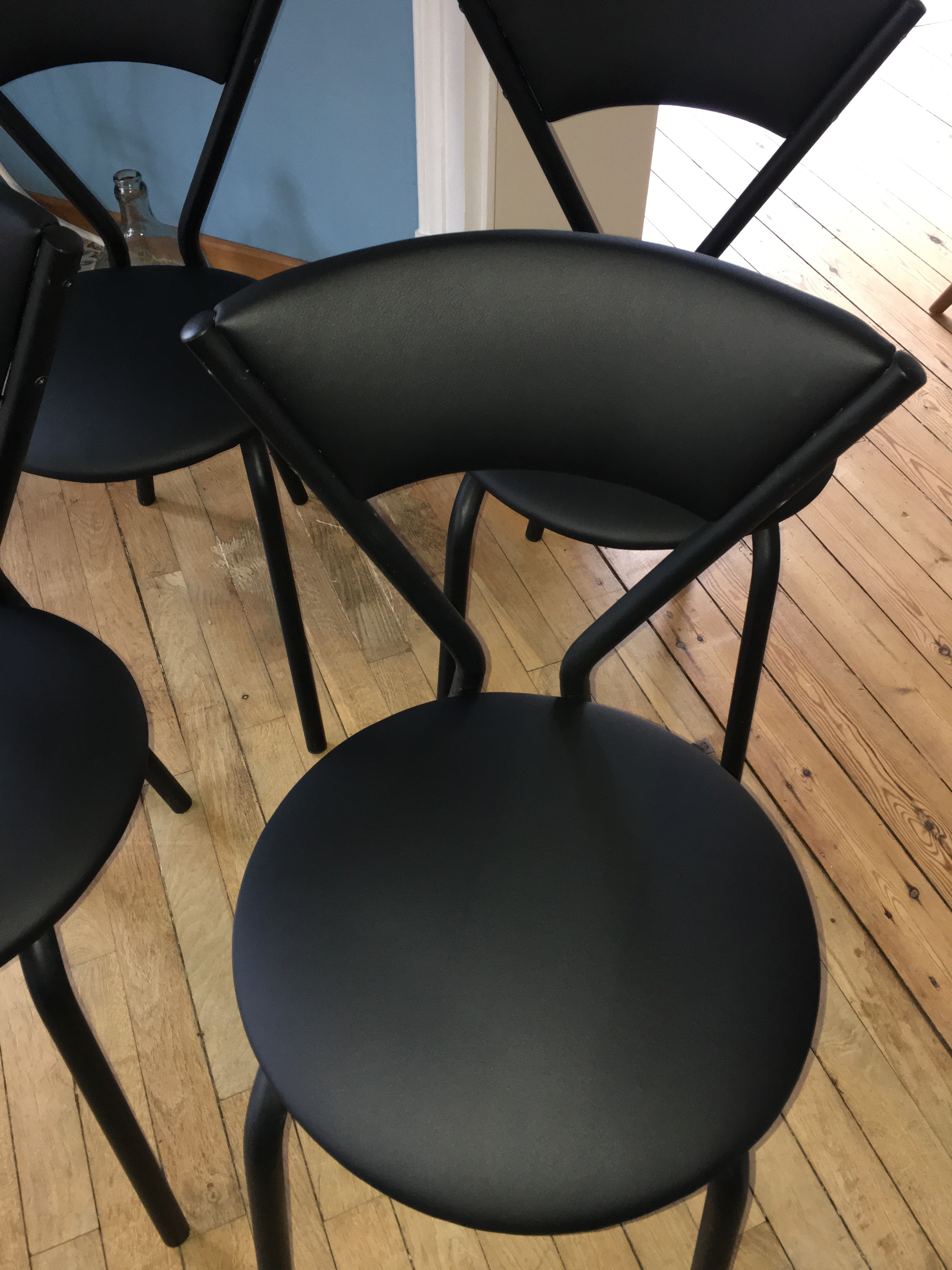 Changement de simili cuir pour ces 2 fauteuils abîmés.