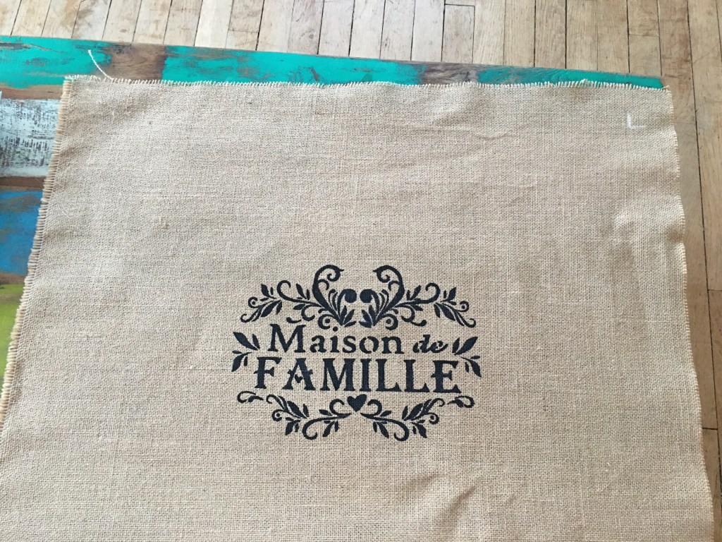 Création d’une toile de jute personnalisée pour les travaux d’un particulier.