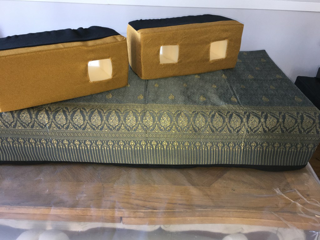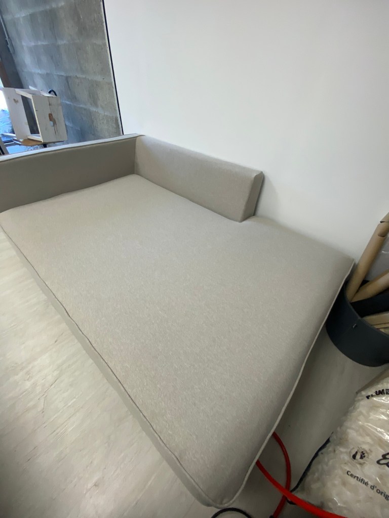 Création de housses (forme drap housse, empiècements) pour des mousses sur mesure.