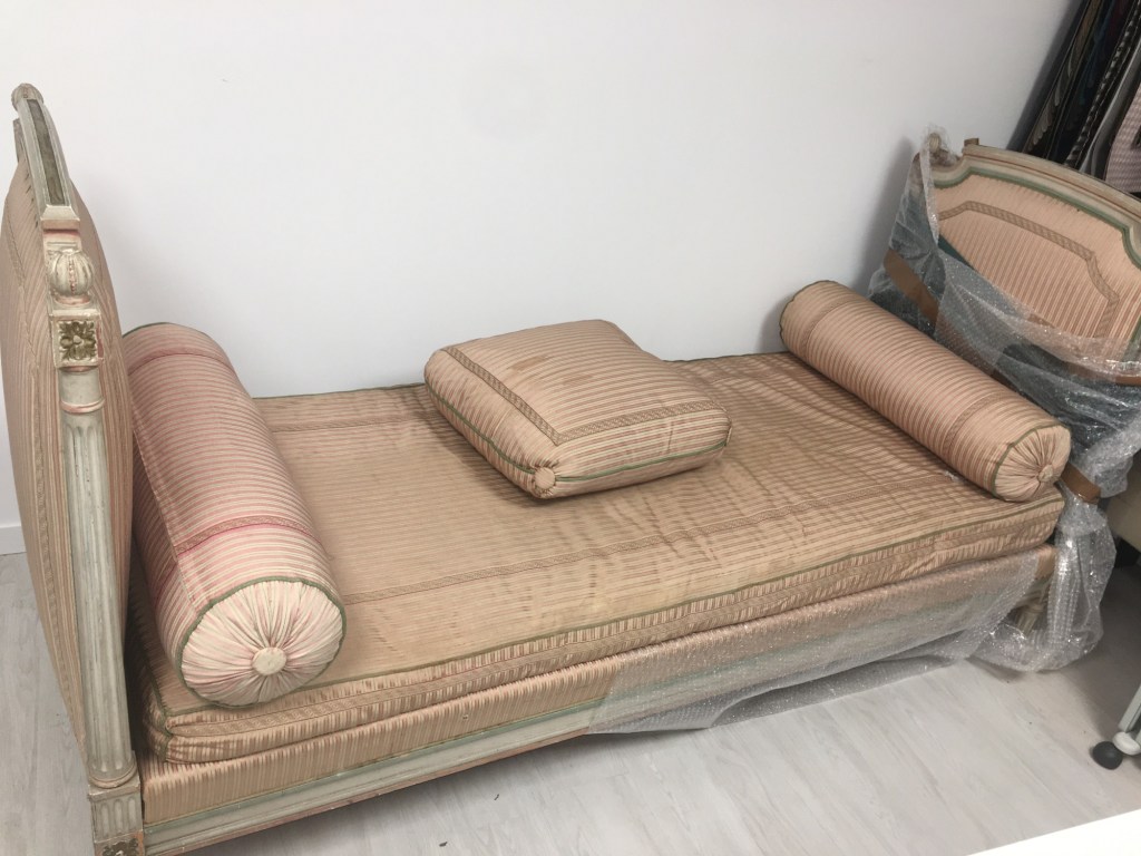 AvantAvantAvant Après : nouveau tissuNouveau tissuRecouvrage complet pour cette méridienne moderne.Avant et pendant la restauration Restauration complète pour ce fauteuil des années 30. Disponible à la vente.AvantAvantRecouvrage d’un canapé relax 2 places.AvantAvantAvantRéfection assise et recouvrage pour ce fauteuil style Restauration.AvantAvantRecouvrage d’une assise de chaise.AvantAprès Garnissage et recouvrage de 8 assises de chaises.Réfection totale pour ce fauteuil anglais. Tissu Thevenon Virginie fond ficelle et finitions Les Passementeries de l’Ile de France.Recouvrage pour ce lit de repos Louis XVI : recouvrage, création de coussins, housses de coussins… Tissu d’ameublement Toile de Jouy Thevenon, finition Les passementeries de l’Ile de France.