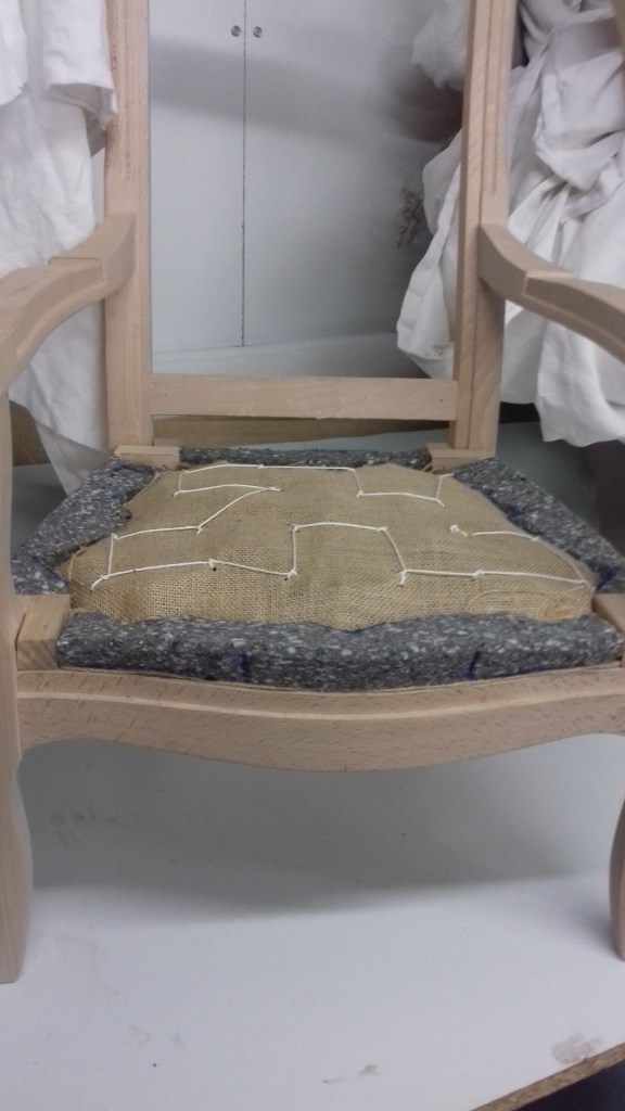 Réfection assise : remplacement de la garniture de l’assise et pose du tissu et finition